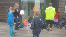 Drei 4. Klassen hatten das große Glück, am 08.09., 09.09. bzw. 10.09. das Angebot „Wasser“ des Freilandlabors in Kooperation mit dem Umweltbildungszentrum Kienberg nutzen zu können. Dazu wurde jeweils die Klasse vor Ort in zwei Gruppen geteilt. Die erste Gruppe ging zunächst an eine gut zugängliche Wasserstelle und kescherte. Dann wurden die kleinen Lebewesen, die ins Netz gegangen waren, mit modernen Mikroskopen betrachte, bestaunt und abgezeichnet. Zum Schluss durften die Tierchen, darunter z.B. ein Egel und die Rote Zuckmückenlarve, wieder ins Wasser zurück.